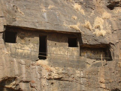 Soon, we took a short mountainous ride and reached a spot from where we had to do a short trek to reach the Karla cave complex. Already I was not very enthusiastic about this and now I had trek in the sun. I was not at all happy about this. Surprisingly, my wife was very excited about visiting this place. So, after gradually trudging along, we finally made it to the cave complex. As we entered the complex, I wasn’t instantly awed by the place. All I saw was a mountain that had some cave like formations in the shape of rooms.