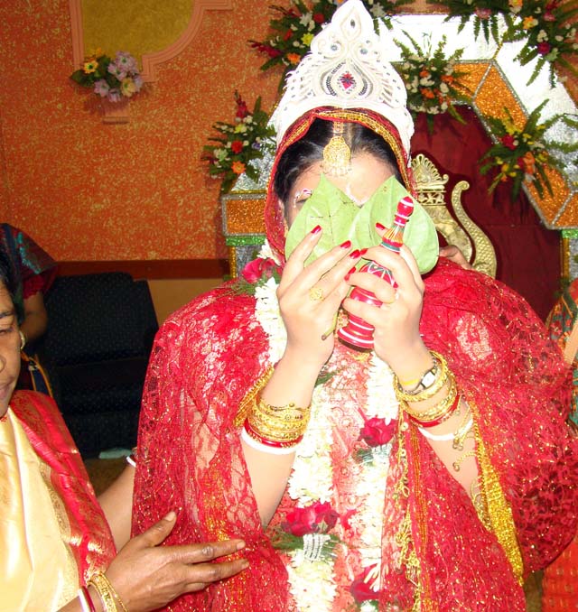 Covering face with betel leaves Bong style