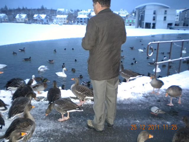 In winter this lake freezes but to care for the resident birds, they pour hot water in one corner of the lake and keep it liquid to allow birds to stay and play.