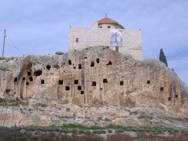 On the way we saw some caves (man made)… they were so high I was surprised how people would be reaching there. Â I was told by my driver that those caves were used by ancient inhabitabts as shelter from enemies. Â They would take help of a rope ladder to go upto the cave and then drag the rope up… and no one was able to reach them. Â According to unconfirmed sources Palestine and Hizbollah were using those caves to hide their weapons and their warriors.