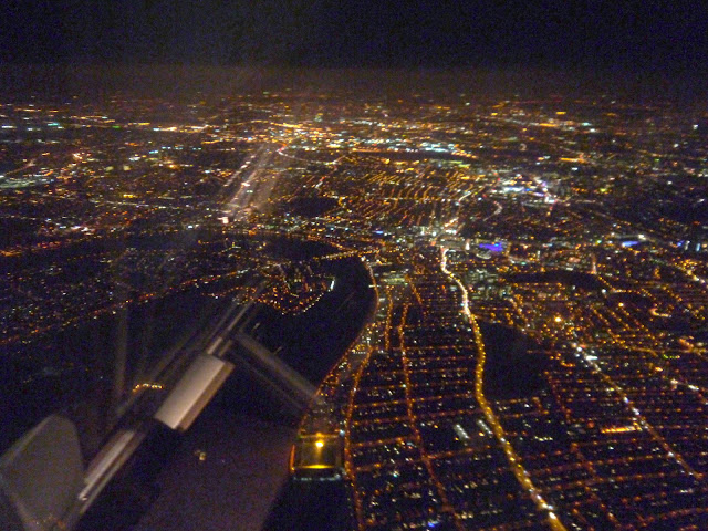 The flight left on time and by 1930 we were hovering above London Heathrow. Â London looked beautiful from above…sparkling with lights.