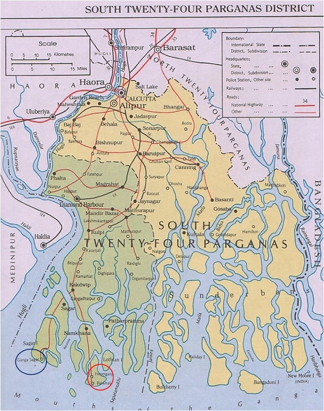 Pic-8 The map of South 24 pgs ñ Bakkhali (Red Circle) & Ganga Sagar (Blue Circle)
