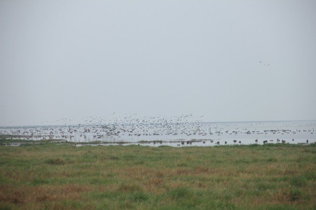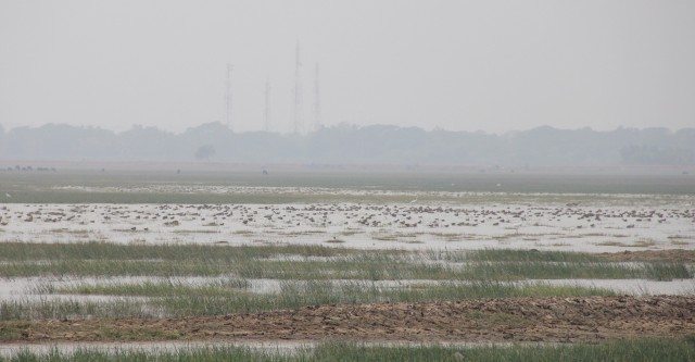 Having filled our tummies in the middle of nowhere, we proceeded further on our birding trip. We got off at a mud bank and started walking. While walking I saw many black spots on a dry piece of land, very far. I thought of what could it be and I could only guess of stones. I engaged everyone else also in that quest. Looking by binoculars also made them look like stones but I still had a doubt that they could be birds, but I had never seen so many birds alike sitting together. The guide told us that they were not stones, they were indeed birds! We all were amazed!