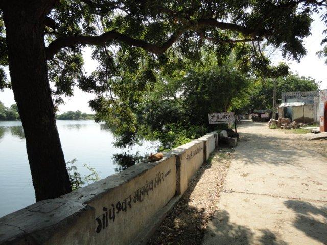 At about 09:45 AM we reached Nageshwar Mahadev temple that is about 15 kms from Rukmini Devi Temple and is considered as tenth Jyotirlinga, where Lord Shiva is believed to have appeared in the form of Linga from the earth to save one of his devotees, Supriya from the hands of demon couple Daruka and Daruki. Here a Huge Statue of Lord Shiva had been constructed and lot of renovation work had been performed by T-series Company. You can have the darshanam of the Lord from outside the sanctum. However if you wish to have a closer darshanam and even touch the Jyotirlinga, you can do that subject to the condition that you purchase a Puja thal at least for Rs. 151/-. I got a thal for Rs. 151 which also contained a pair of silver Naga and Naagin, considered auspicious here to be offered to the Lord. This Puja thal will serve as entry pass and I was then directed to a room where I put on a dhoti, removing my trousers (of course no rent was charged for the dhoti). I got inside the garbh griha (sanctum), performed darshanam and even sat for some one minute there. There was not too much rush and all this was over within half an hour. Then we proceeded for Bhet Dwarka and on the way we also visited Gopi Talab where Lord is believed to play with Gopikas.