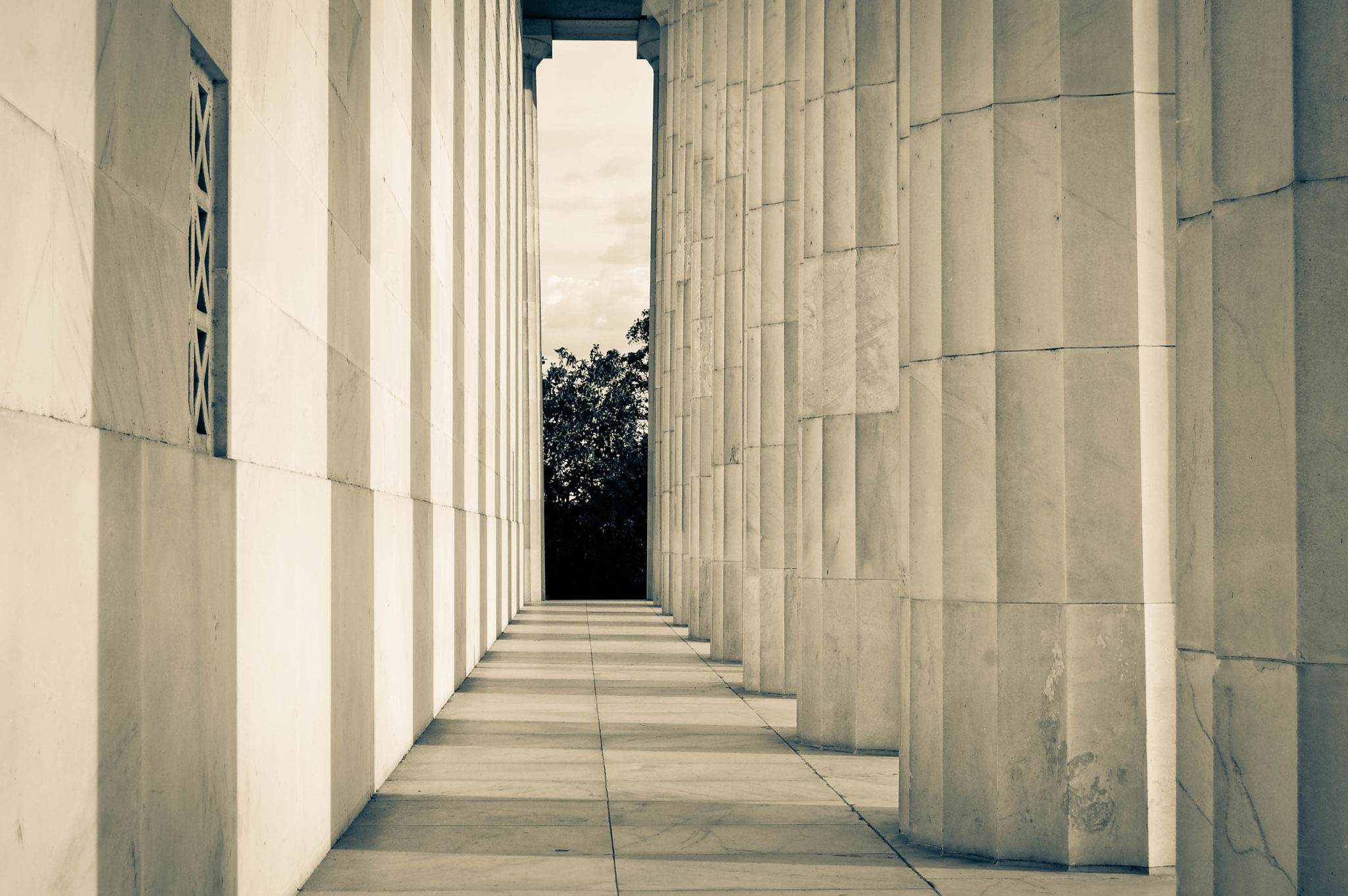 White marbled pillars at the Lincoln Memorial